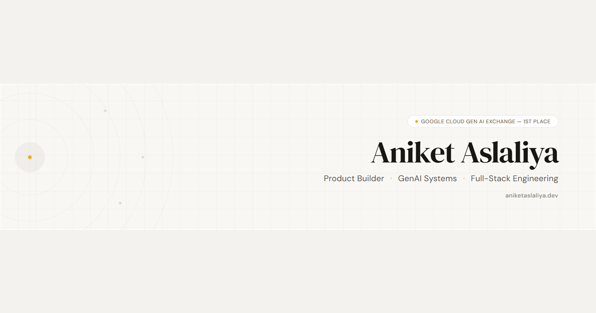 Google Cloud Gen AI Exchange Hackathon Winner 2025. Co-founder of Afterink Studio (INR 5L+ revenue, 25+ clients). 3rd-year engineering student at LNMIIT, Jaipur.